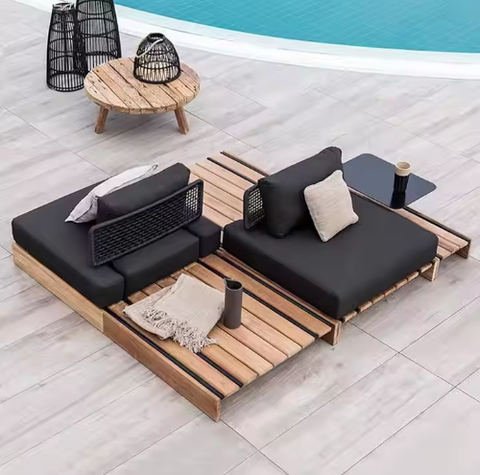 Moderno più Design impermeabile Teak piscina piscina cortile laterale soggiorno Patio in legno divano da giardino esterno