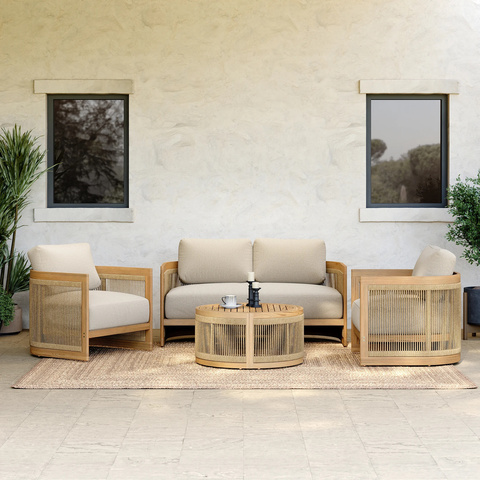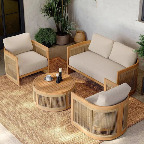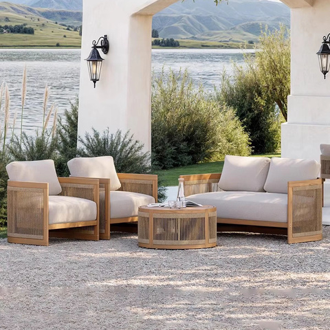 Moderno più Design impermeabile Teak balcone piscina lato cortile in legno soggiorno Patio divano da giardino esterno componibile