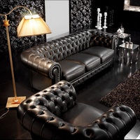 American Style Waiting Area Hotel Living Room Furniture Oil Wax Leather Pull Buckle Salon Waterproof Leather Sofa