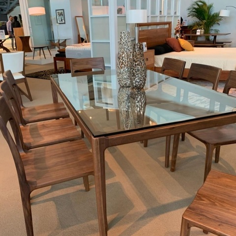 Juego de Mesa de Comedor Rectangular de Madera Color Nogal para 6 Personas, Muebles de Cocina y Comedor Estilo Villa Escandinava