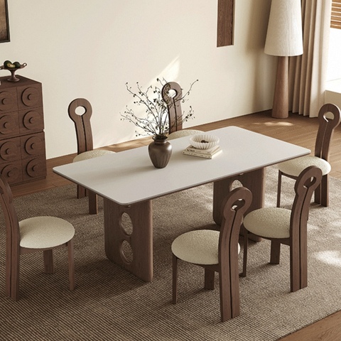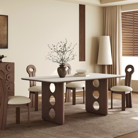 Juego de Mesa de Comedor Rectangular de Diseño Minimalista, Estilo Francés Retro, para Hotel, Restaurante o Apartamento, Madera Maciza, Diseño Hueco con Efecto de Sombra