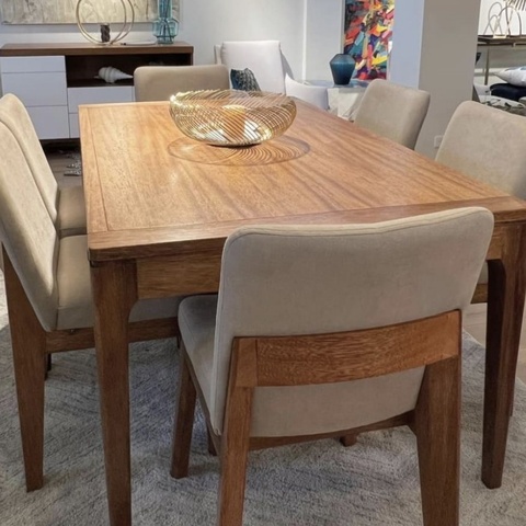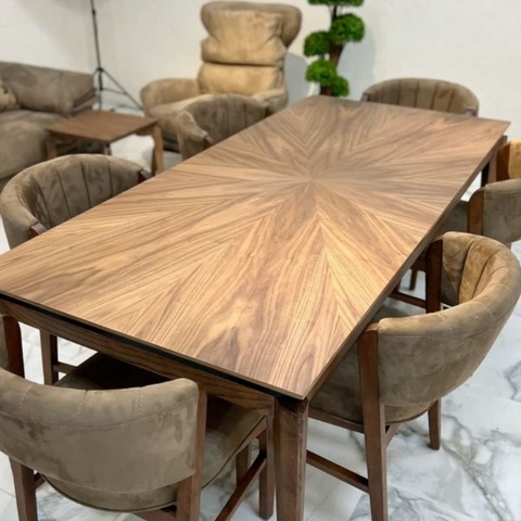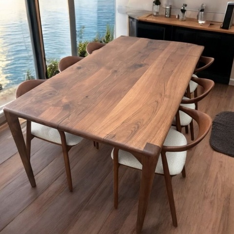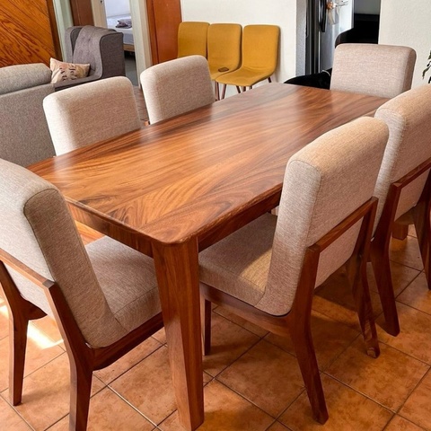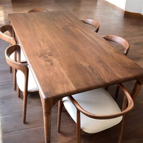Muebles de Comedor de Estilo Escandinavo para Villa, Juego de Mesa de Comedor Rectangular Color Nogal, Mesa de Comedor de Madera para 6 Personas