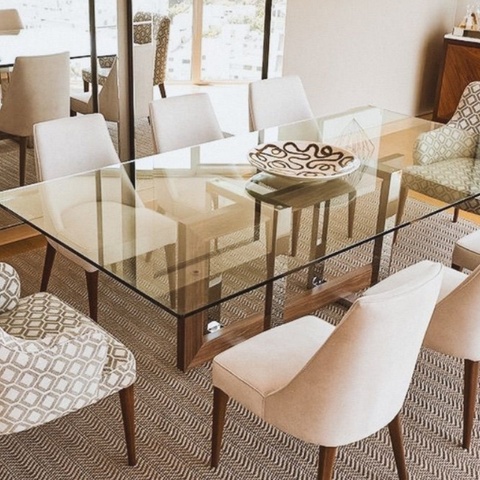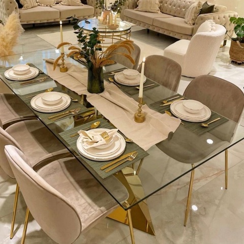Italiano minimalista vidrio templado transparente hogar Hotel restaurante muebles Conferencia comedor mesa de cristal