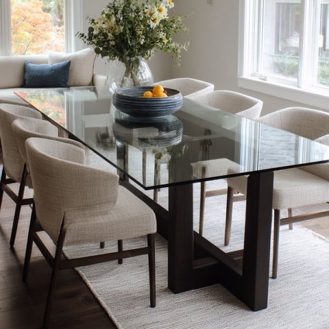Italiano minimalista transparente de vidrio templado Hotel hogar restaurante Oficina comedor muebles Conferencia comedor mesa de vidrio